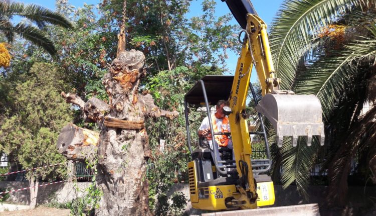 L’albero, autentico simbolo della stazione ferroviaria, è stato trasportato nell’aiula che costeggia la banchina. Alla delicata operazione hanno collaborato l’esperto al verde del comune, Umberto Cuscunà e gli oeprai comunali con l’autobotte, oltre ai vigili urbani che hanno regolamentato il traffico.