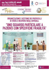 Il 14 e 15 luglio 2018 l’Associazione Sorge il Sole di Naso, centro nebroideo in provincia di Messina, e l’Università Unisampaolo di Roma presenteranno un convegno dal titolo “Organizzazione e gestione dei protocolli di visita e ricovero negli ospedali”: uno sguardo particolare a pazienti con specifiche fragilità”. Sede dell’evento sarà il Chiostro dei Minori Osservanti sito a Naso.