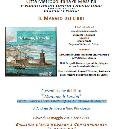 Nell’ambito del maggio dei libri, giovedì prossimo, 23 maggio, alle 17.00, presso la galleria d’arte moderna e contemporanea Lucio Barbera di Messina, sarà presentato il libro “Mamma li turchi” di Andrea Bambaci e Nino Principato.