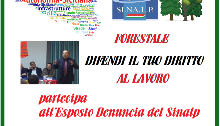 Il Sinalp, non accettando questo ennesimo tentativo truffa che si vorrebbe perpetrare per l’ennesima volta verso il diritto al lavoro dei forestali siciliani, ha deciso di dare il via ad una azione sindacale forte che costringa la Regione Siciliana a dare il via ad un programma di stabilizzazione dei lavoratori assumendoli a tempo pieno ed indeterminato contestualmente ad un sistema di incentivi alla pensione per tutti coloro i quali hanno ormai raggiunto i requisiti per questo importante traguardo della vita.