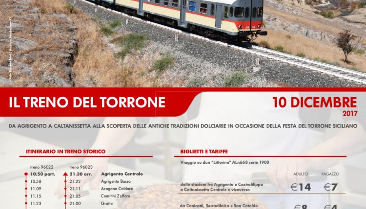Domenica 10 dicembre, in occasione della Festa del Torrone Siciliano in programma a Caltanissetta nel week – end dell’Immacolata, uno treno storico partirà alle 10.50 dalla stazione di Agrigento centrale alla volta del capoluogo nisseno.