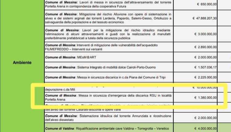 “Come è ben noto – spiega l’assessore – il Patto per il Sud comprende una miriade di interventi. Gli uffici della Regione hanno scoperto che l’intervento di Portella Arena, per la messa in sicurezza d’emergenza della discarica di rifiuti, era presente sia nel Patto di competenza della Regione, sia nel Patto per lo sviluppo della Città metropolitana di Messina. Insomma, era presente due volte.